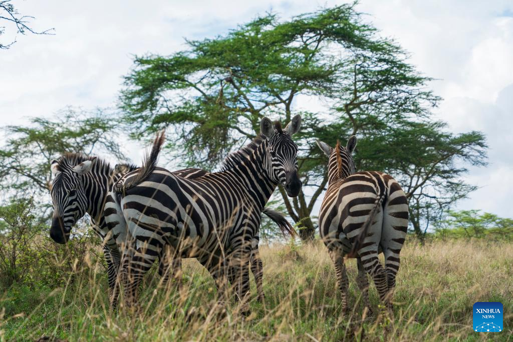 This photo taken on March 2, 2026 shows a herd of zebras at the Lake Nakuru National Park in Nakuru County, Kenya.