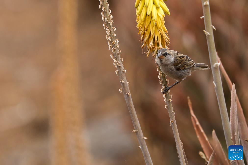 A sparrow forages for food on Santiago Island, Cape Verde, Feb. 27, 2026. World Wildlife Day, which is observed annually on March 3, was established by the United Nations in 2013 to raise awareness and celebrate the contributions of wild animals and plant species to human survival. (Photo by Elton Monteiro/Xinhua)