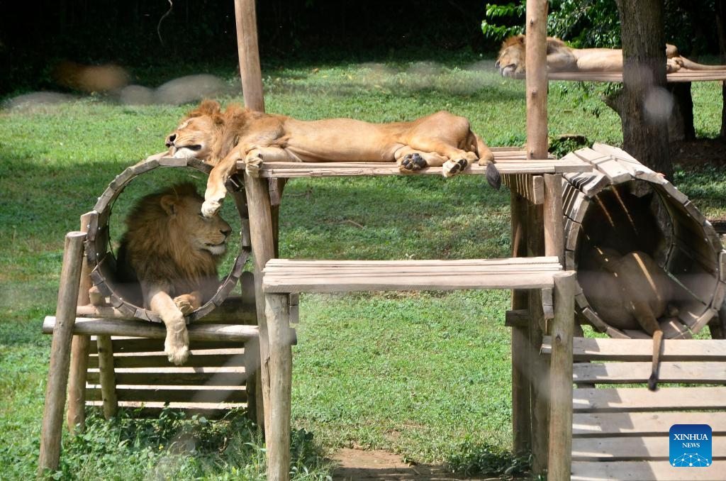 This photo taken on March 3, 2026 shows lions at the Uganda Wildlife Conservation Education Centre in Entebbe, Uganda.