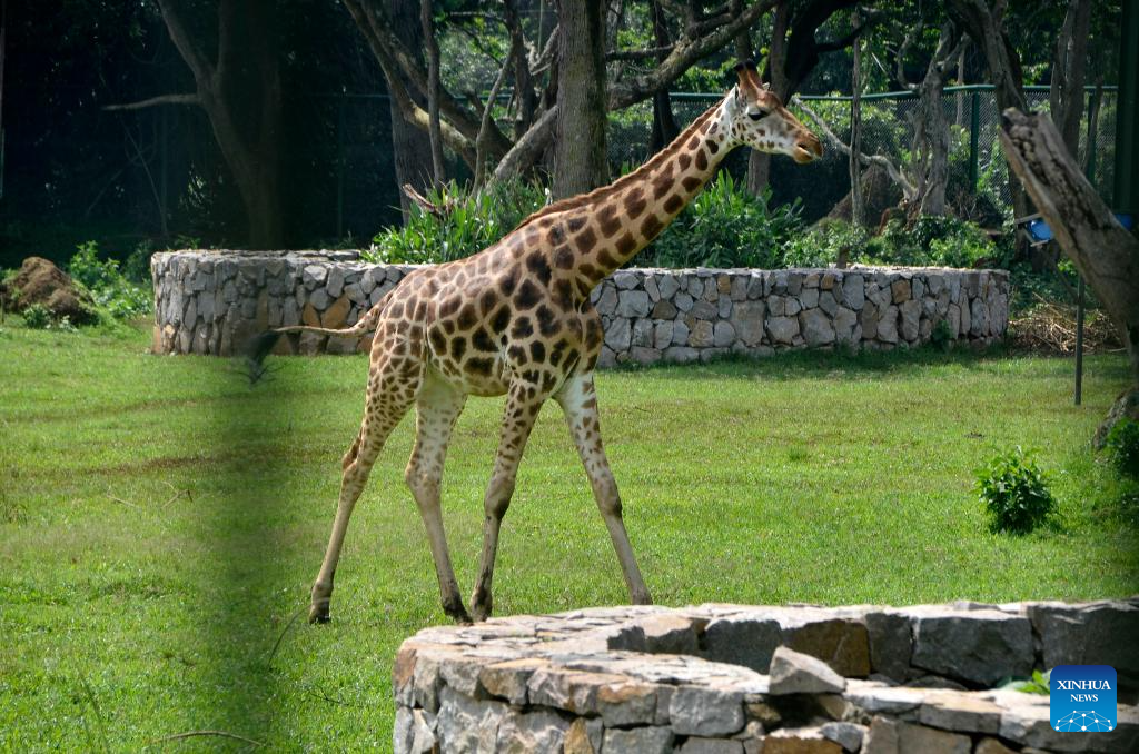 This photo taken on March 3, 2026 shows a giraffe ambling at the Uganda Wildlife Conservation Education Centre in Entebbe, Uganda.