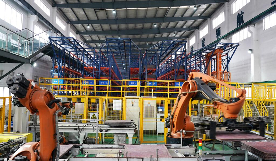 Robotic arms transfer copper plates at a smart electrolysis workshop of Guixi Smelter in Yingtan City, east China's Jiangxi Province, on Jan. 21, 2026.