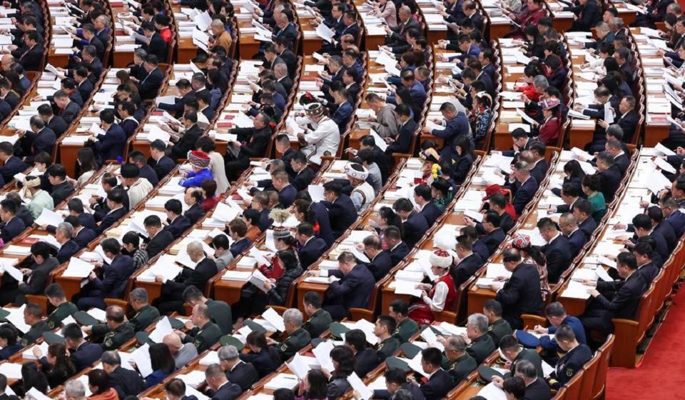 The opening meeting of the fourth session of the 14th National People's Congress (NPC) is held at the Great Hall of the People in Beijing, capital of China, March 5, 2026. (Xinhua/Liu Weibing)