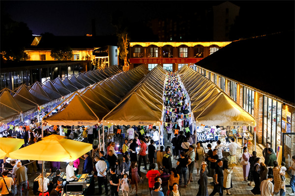 Visitors browse stalls at a bustling weekend night market at Taoxichuan neighborhood in Jingdezhen, Jiangxi province. [Photo provided to China Daily]