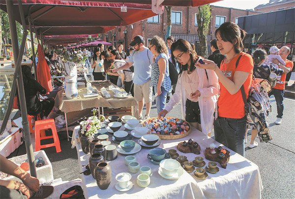 The creative ceramics market at Taoxichuan neighborhood draws visitors. [Photo provided to China Daily]