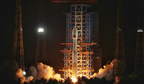 The rocket lifted off at 3:48 a.m. (Beijing Time) from the Hainan commercial spacecraft launch site. It successfully placed the payloads, the 20th group of low-orbit internet satellites, into preset orbit. (Photo by Liu Jianqiu/Xinhua)