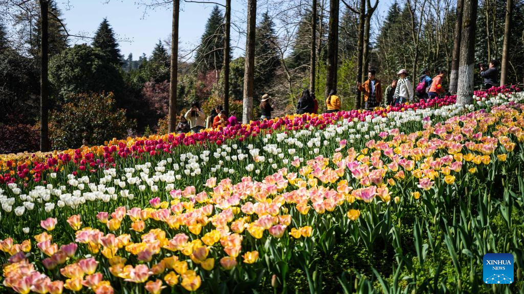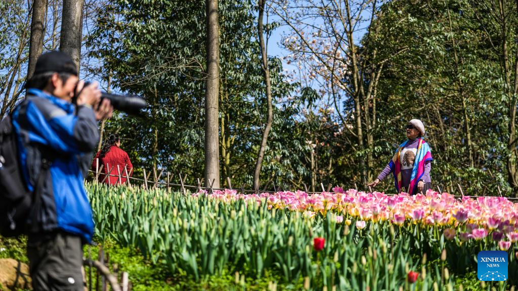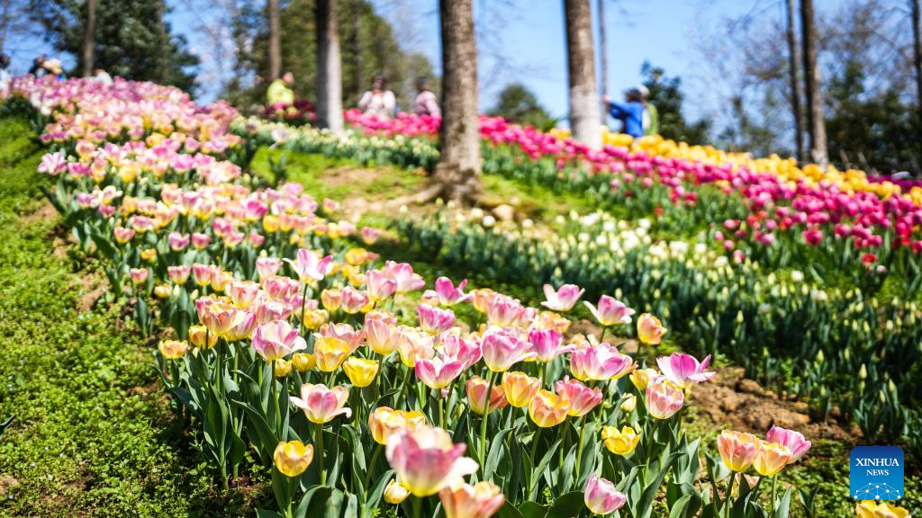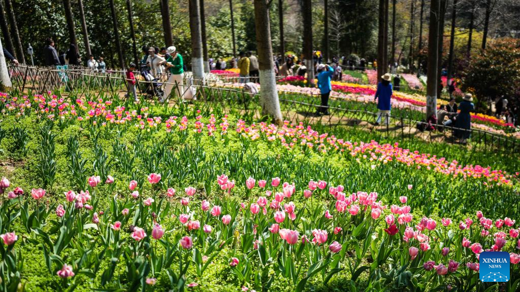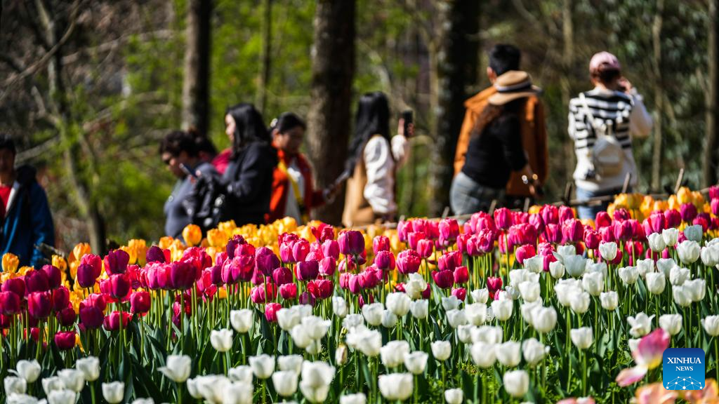 Tourists view tulips at Longjiashan National Forest Park in Longli County, southwest China's Guizhou Province, March 12, 2026. (Xinhua/Tao Liang)