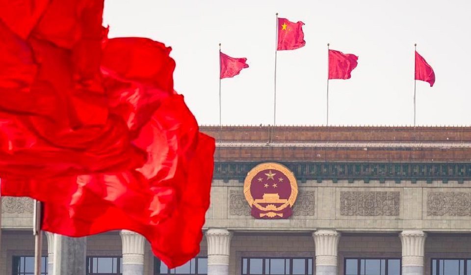 This photo taken on March 12, 2026 shows the Great Hall of the People ahead of the closing meeting of the fourth session of the 14th National People's Congress (NPC) in Beijing, capital of China. (Xinhua/Li Yan)
