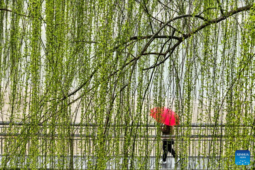 People take selfies amid blossoms in Kaifeng City, central China's Henan Province, March 16, 2026. (Photo by Li Junsheng/Xinhua)