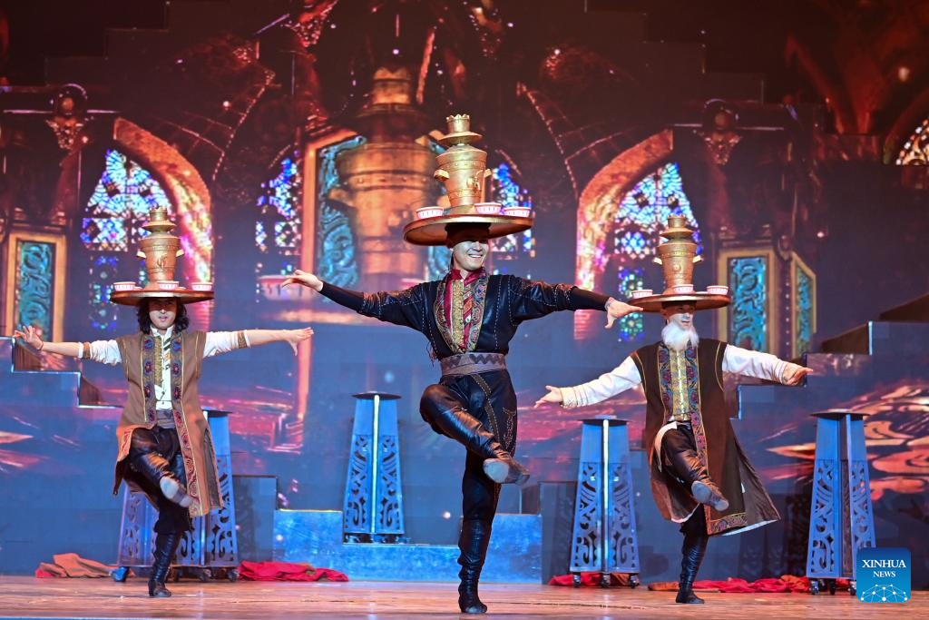 Local artists perform in Kuqa City, northwest China's Xinjiang Uygur Autonomous Region, Nov. 10, 2025. (Xinhua/Guan Qiaoqiao)