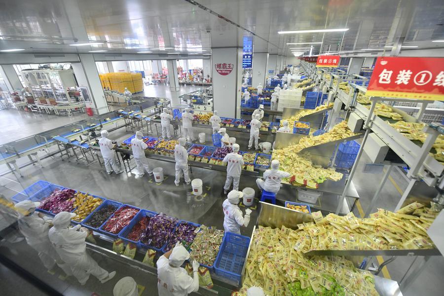 Workers package Luosifen at a food company in Liuzhou City, south China's Guangxi Zhuang Autonomous Region, Sept. 9, 2025. (Xinhua/Huang Xiaobang)