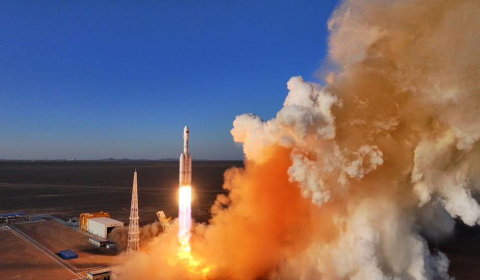 A Lijian-2 Y1 carrier rocket with three satellites onboard blasts off from the Dongfeng commercial space innovation pilot zone in northwest China, March 30, 2026. The rocket blasted off at 7:00 p.m. (Beijing Time) from a commercial aerospace innovation pilot zone in northwest China and successfully sent the satellites into the planned orbit. (Photo by Wang Jiangbo/Xinhua)