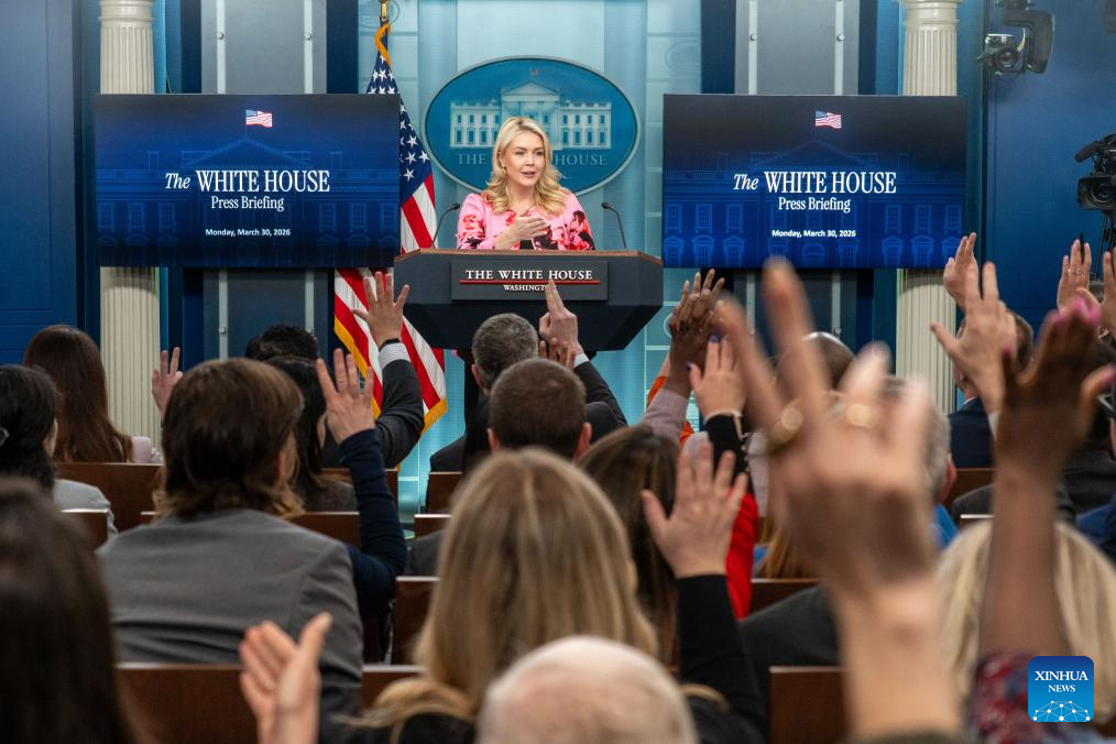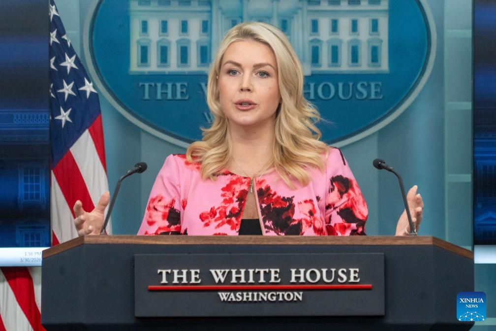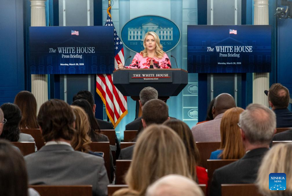White House Press Secretary Karoline Leavitt speaks during a press briefing at the White House in Washington, D.C., the United States, March 30, 2026. (Photo by Li Yuanqing/Xinhua)