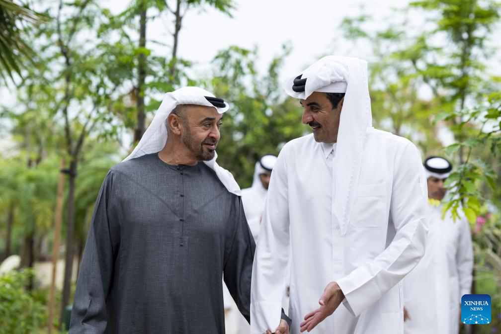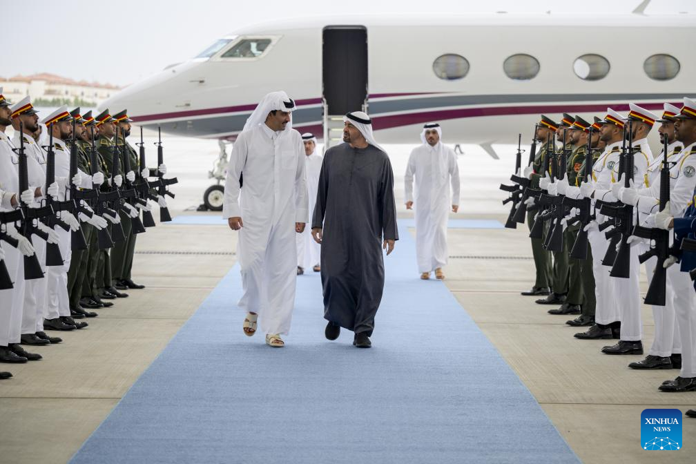 ABU DHABI, March 31 (Xinhua) -- The president of the United Arab Emirates, Sheikh Mohamed bin Zayed Al Nahyan, met Tuesday with visiting Qatari Emir Sheikh Tamim bin Hamad Al-Thani to discuss the regional fallout from the ongoing U.S.-Israel-Iran war and its impact on maritime security and global trade.