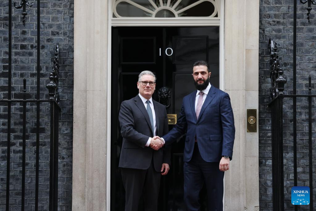 LONDON, March 31 (Xinhua) -- British Prime Minister Keir Starmer met with visiting Syrian interim President Ahmed al-Sharaa at 10 Downing Street on Tuesday and discussed ways to advance bilateral relations.