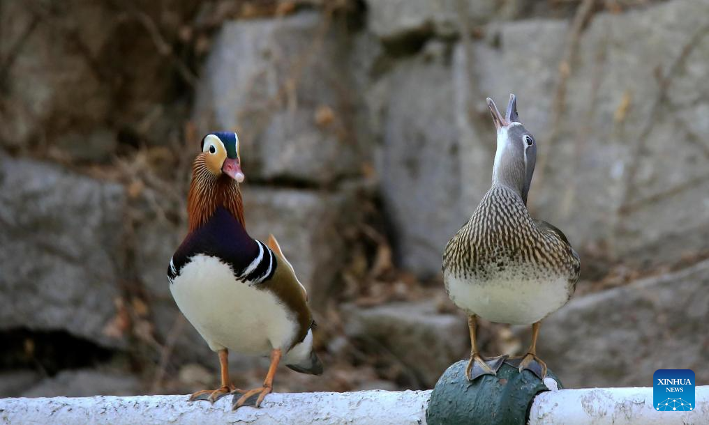 Mandarin ducks are pictured at Zhaolin Park in Harbin, northeast China's Heilongjiang Province, March 30, 2026. (Photo by Zhang Shu/Xinhua)