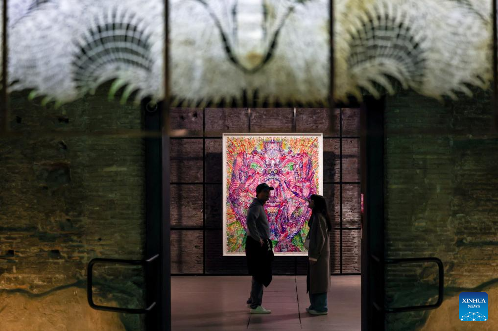 People visit the exhibition "Metamorphosis" in Baths of Diocletian of the National Roman Museum in Rome, Italy, April 1, 2026. The exhibition presents the contemporary Chinese artist Wu Jian'an's reflection on the theme of transformation through a dialogue between Eastern and Western traditions. (Xinhua/Wang Kaiyan)