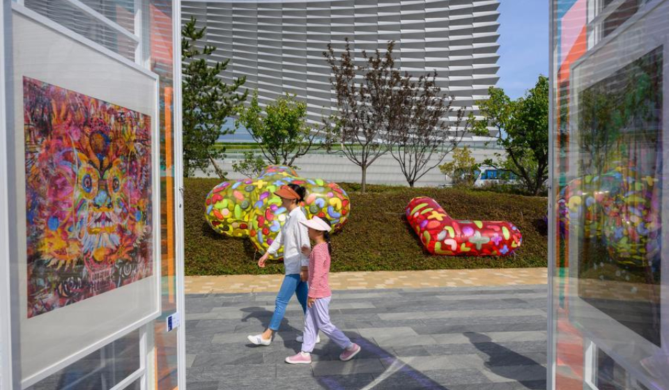 People visit an exhibition of the 2025 Grand Canal Public Art Season in Beijing, capital of China, Oct. 1, 2025. (Xinhua/Jin Liangkuai)