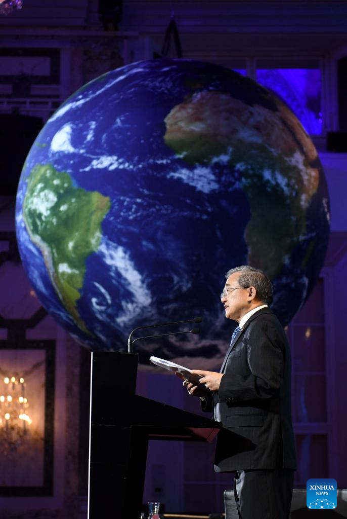 Liu Zhenmin, China's special envoy for climate change, delivers a speech at the International Vienna Energy and Climate Forum in Vienna, Austria, April 9, 2026. Under the theme "Powering Prosperity, Security and Stability," the International Vienna Energy and Climate Forum 2026 opened here on Thursday. (Xinhua/He Canling)
