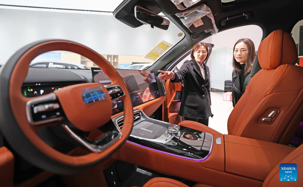 New energy vehicle (NEV) output and sales stood at 1.23 million units and 1.25 million units, respectively. (Photo by Xue Yingying/Xinhua)