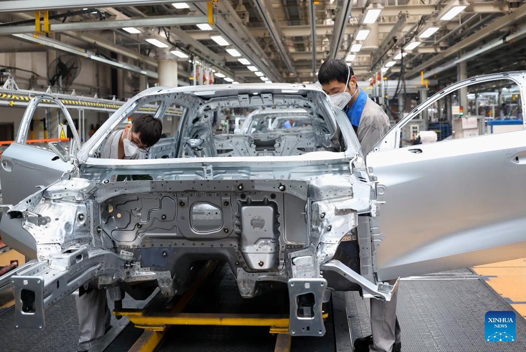 New energy vehicle (NEV) output and sales stood at 1.23 million units and 1.25 million units, respectively. (Photo by Hao Xincheng/Xinhua)