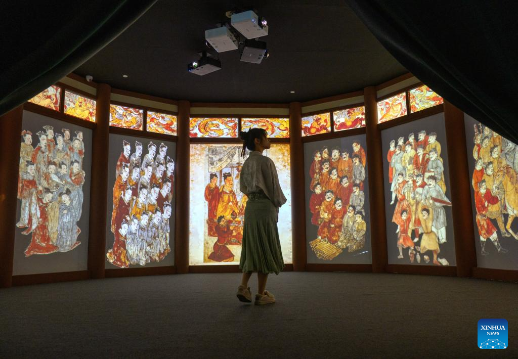 A visitor views the exhibition "A Glimpse into 6th-7th Century China: Discoveries at Li Jingxun's Tomb" at the National Museum of China in Beijing, capital of China, April 13, 2026. The ongoing exhibition features relics unearthed from the tomb of Li Jingxun, a young princess who died in 608, and recently discovered key relics from the Northern and Southern Dynasties (420-589) to the Sui Dynasty (581-618). (Xinhua/Jin Liangkuai)