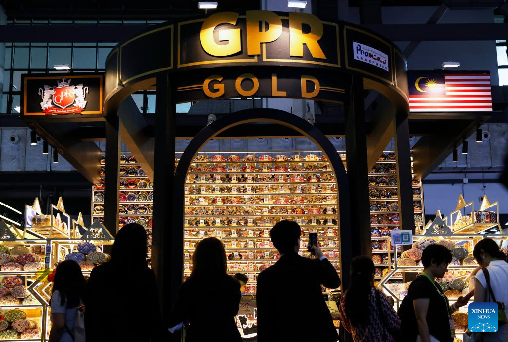 People learn about Malaysian products during the sixth China International Consumer Products Expo (CICPE) in Haikou, south China's Hainan Province, April 13, 2026. Jointly hosted by China's Ministry of Commerce and the Hainan provincial government, the sixth CICPE marks the first edition of the event since the Hainan Free Trade Port fully launched island-wide special customs operations.