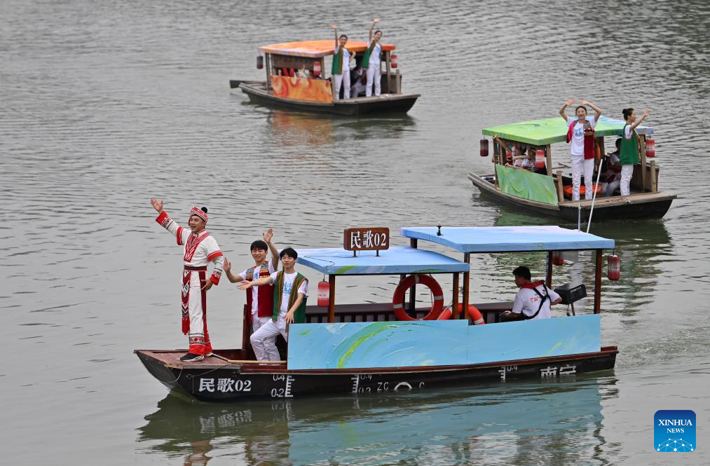 Actors perform in an event celebrating the Sanyuesan Festival in Nanning, south China's Guangxi Zhuang Autonomous Region, April 19, 2026. The Sanyuesan Festival is a traditional festival celebrated on the third day of the third lunar month by various ethnic groups in China, which falls on April 19 this year. (Xinhua/Lu Boan)