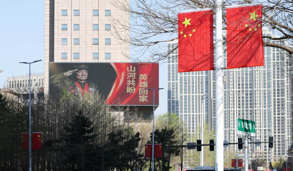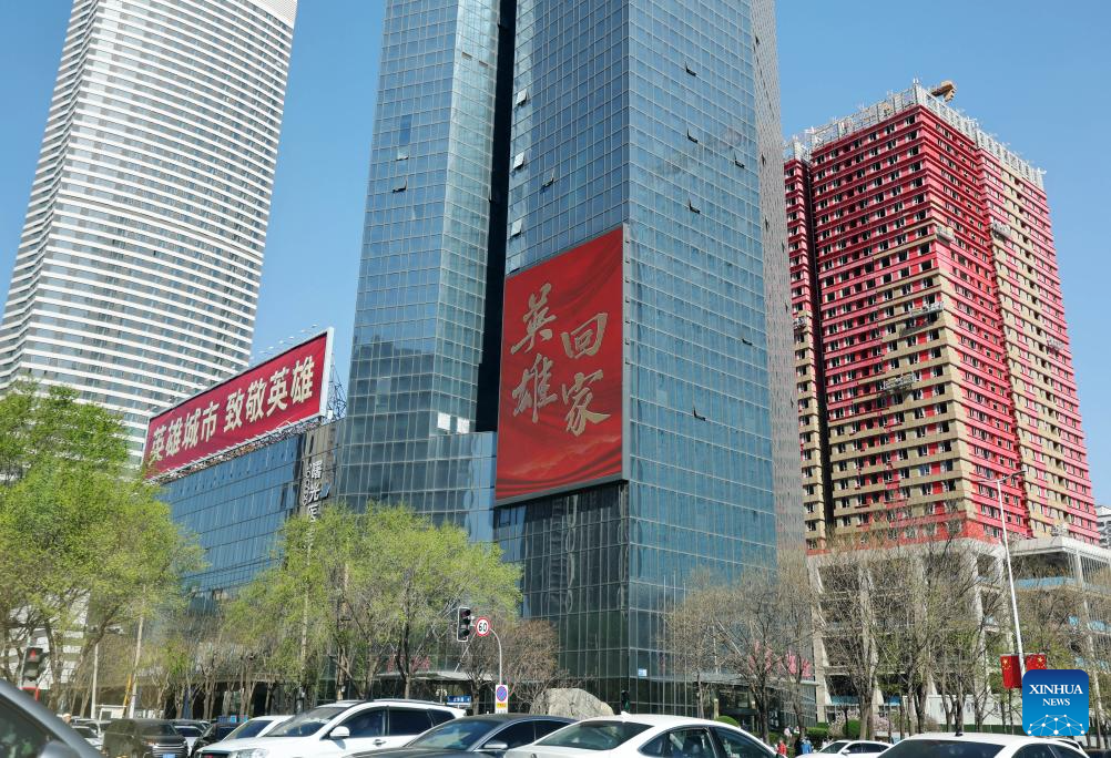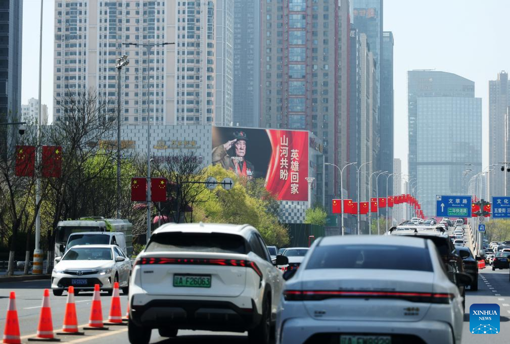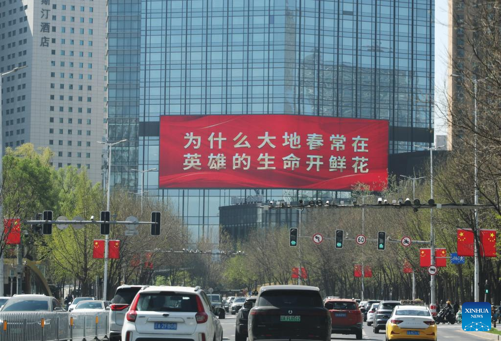 This photo taken on April 21, 2026 shows slogans welcoming the return of Chinese People's Volunteers (CPV) martyrs' remains from the Republic of Korea (ROK) in Shenyang, northeast China's Liaoning Province. The remains of 12 CPV martyrs killed in the War to Resist U.S. Aggression and Aid Korea (1950-1953) will be returned to China from the ROK on Wednesday, according to China's Ministry of Veterans Affairs.