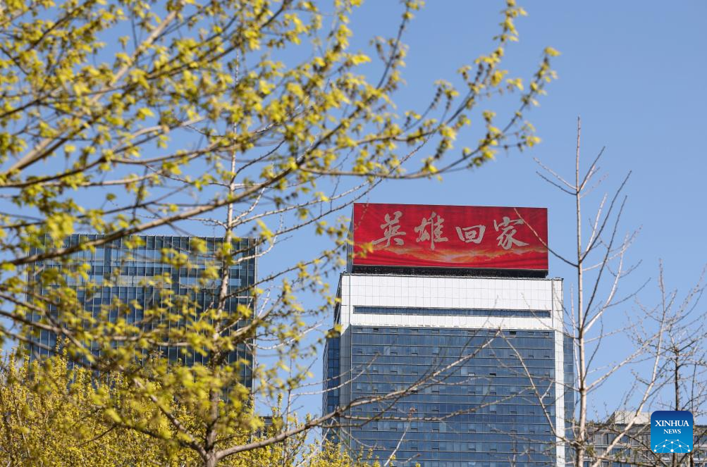 This photo taken on April 21, 2026 shows a slogan welcoming the return of Chinese People's Volunteers (CPV) martyrs' remains from the Republic of Korea (ROK) in Shenyang, northeast China's Liaoning Province. The remains of 12 CPV martyrs killed in the War to Resist U.S. Aggression and Aid Korea (1950-1953) will be returned to China from the ROK on Wednesday, according to China's Ministry of Veterans Affairs. The heroes' return was welcomed with the highest courtesy in Shenyang. (Xinhua/Li Gang)