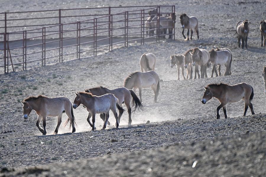 CHANGJI, April 22 (Xinhua) -- A total of 30 Przewalski's horses were successfully reintroduced to the Kalamaili Nature Reserve on Wednesday after completing rewilding training.