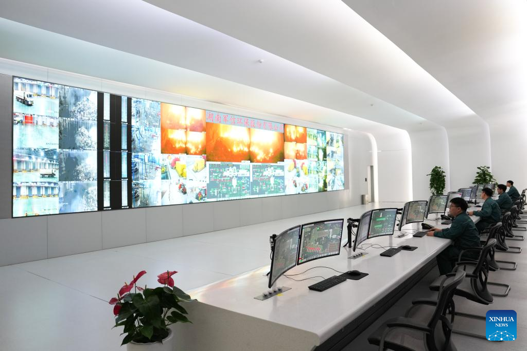 Staff members monitor the operation of facilities at the central control room of the Heimifeng environmental protection park in Changsha City, central China's Hunan Province on April 22, 2026.