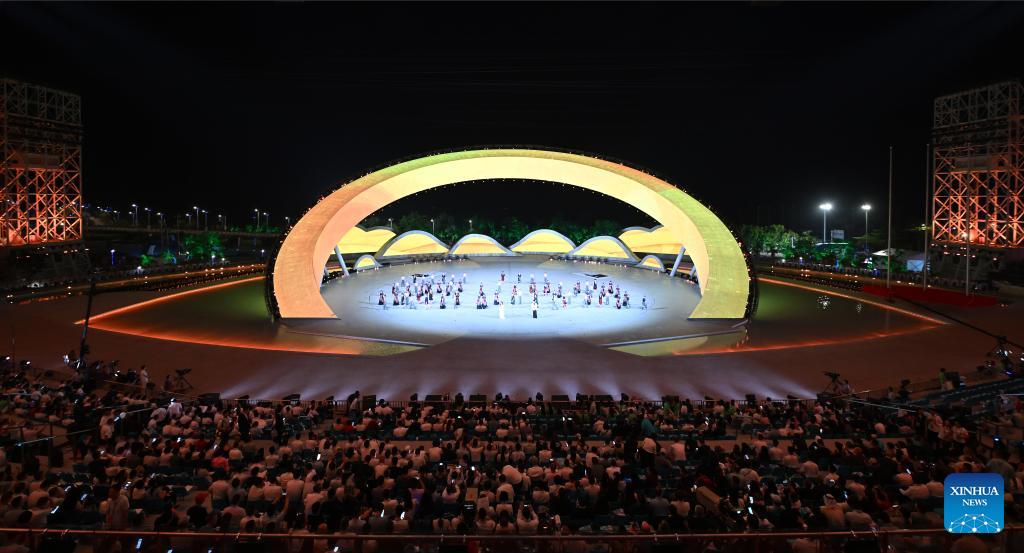 Artists perform before the opening ceremony of the 6th Asian Beach Games in Sanya, south China's Hainan Province, April 22, 2026. (Xinhua/Guo Cheng)