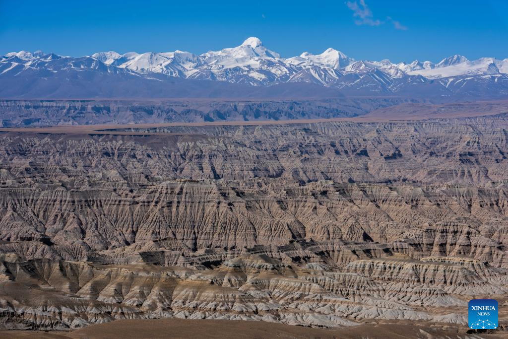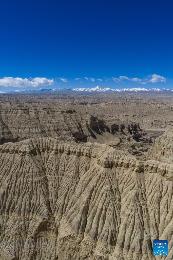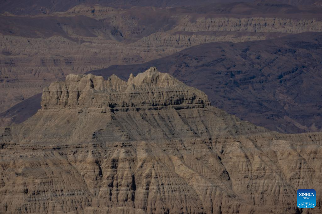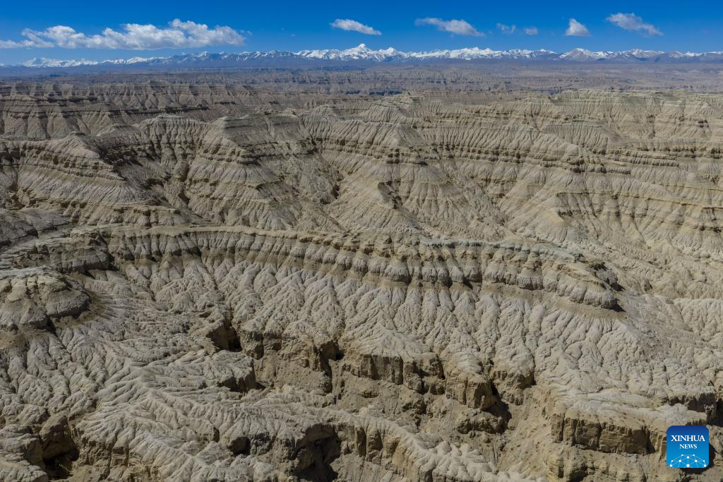 An aerial drone photo taken on April 26, 2026 shows the landscape of earth forest in Zanda County of Ngari Prefecture, southwest China's Xizang Autonomous Region. (Xinhua/Tenzing Nima Qadhup)