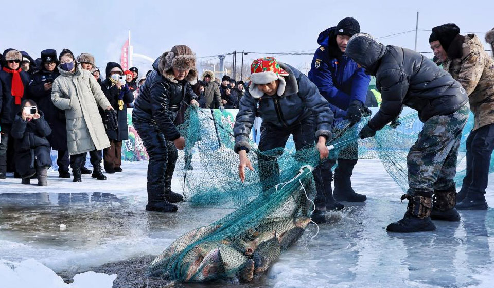 In pics: winter fishing festival in Jiejinkou Hezhe Ethnic Township, China's Heilongjiang